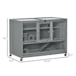 Create a safe and active space for your hamster to feel at home with the triple tiers, seesaw, and multiple ladders of this PawHut hamster cage. You have given them open room for exercise and numerous dark hideouts. The front offers easy sight, featuring crystal clear windows. A large number of doors makes it easy to reach in from anywhere. The wheels allow easy rolling from one spot to another, so when you put the cage on your desk, you can move it around as needed and avoid heavy lifting. Features: - 3 tiers, offering tons of space - Unique seesaw toy and multiple dark hideouts for either spoiling one hamster or owning 2-3 - Rolls on wheels for quickly moving around on a desk or flat surface - Fits on desks and side tables to stay right next to you throughout the day - Glass allows crystal clear sight to the interior - Three openings, one on top, one in front, and one on the side, for reaching in from anywhere - Solid fir wood construction for long-term use - Suitable for indoors or covered outdoor use - Assembly required Specification: - Color: Slate Grey - Material: Fir Wood, Plexiglass - Overall Dimensions: 43.25" L x 23.5" W x 31.5" H - Height of Levels (from Bottom to Top): 11.5", 8.5", 7.75" - Front Door Dimensions: 12.5" L x 15.75" H - Side Door Dimensions: 7" L x 9.5" H - Each of Platform (from Bottom to Top): 42.5" L x 17.75" W, 42.75" L x 11.75" W - Each of Ladder (from Bottom to Top): 19.75" L x 4.25" W, 15.75" L x 4.25" W - Tray Dimensions: 41.25" L x 22.5" W - 1 x 3-Tier Hamster Cage - 1 x Instruction Manual.