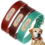 Personalized dog collar with golden nameplate - Custom laser engraved with pet's name, phone number and address.
